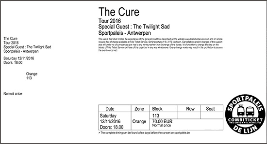 18:00 CET Doors Open 19:00 CET The Twilight Sad 20:00 CET The Cure | |||